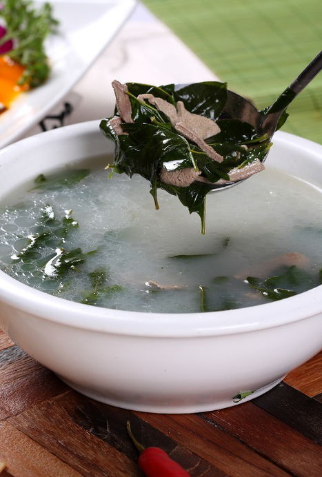 做法一:清水、姜片、枸杞煮15分钟,加入猪肝慢火浸熟,再加入枸叶翻滚即成。
