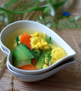 原料:黄瓜1条,紫菜适量,鸡蛋1个。