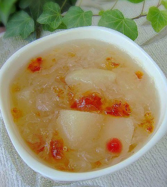 做法:雪梨洗净切块。准备几个炖盅,分别放入雪梨块、蜂蜜及凉白开水。将炖盅放入蒸锅中,隔水炖半个小时即可。