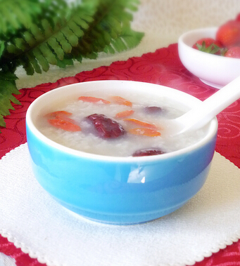 材料:红豆60g、糙米150g、小米50g、红枣8颗、枸杞子1勺、水1500毫升。